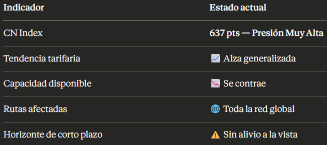 📈 El índice CN salta a 637 — el mercado naviero entra en zona de "Presión Muy Alta"